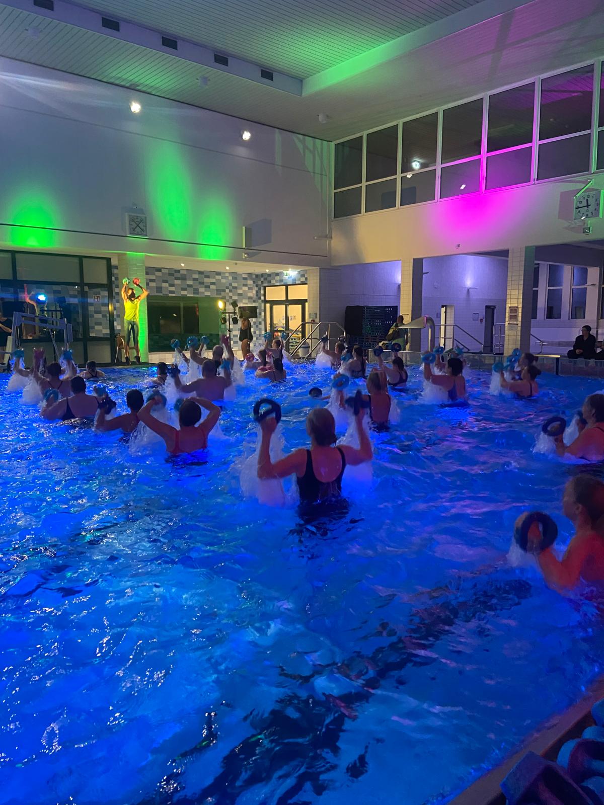Es war ein super tolles Event. 4 Stunden Aquafitness am Stück. Von 20 Uhr bis 24 Uhr.